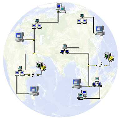 Wenn also im Internet ein Datentransfer stattfindet, ist keinesfalls von vorneherein klar, welchen Weg die Daten nehmen. Sogar einzelne Pakete einer einzigen Sendung können völlig unterschiedliche Wege nehmen. Wenn Sie beispielsweise von Deutschland aus eine Web-Seite aufrufen, die auf einem Rechner in den USA liegt, kann es sein, dass die Hälfte der Seite über den Atlantik kommt und die andere über den Pazifik, bevor Ihr Web-Browser sie anzeigen kann. Weder Sie noch Ihr Browser bekommen davon etwas mit.